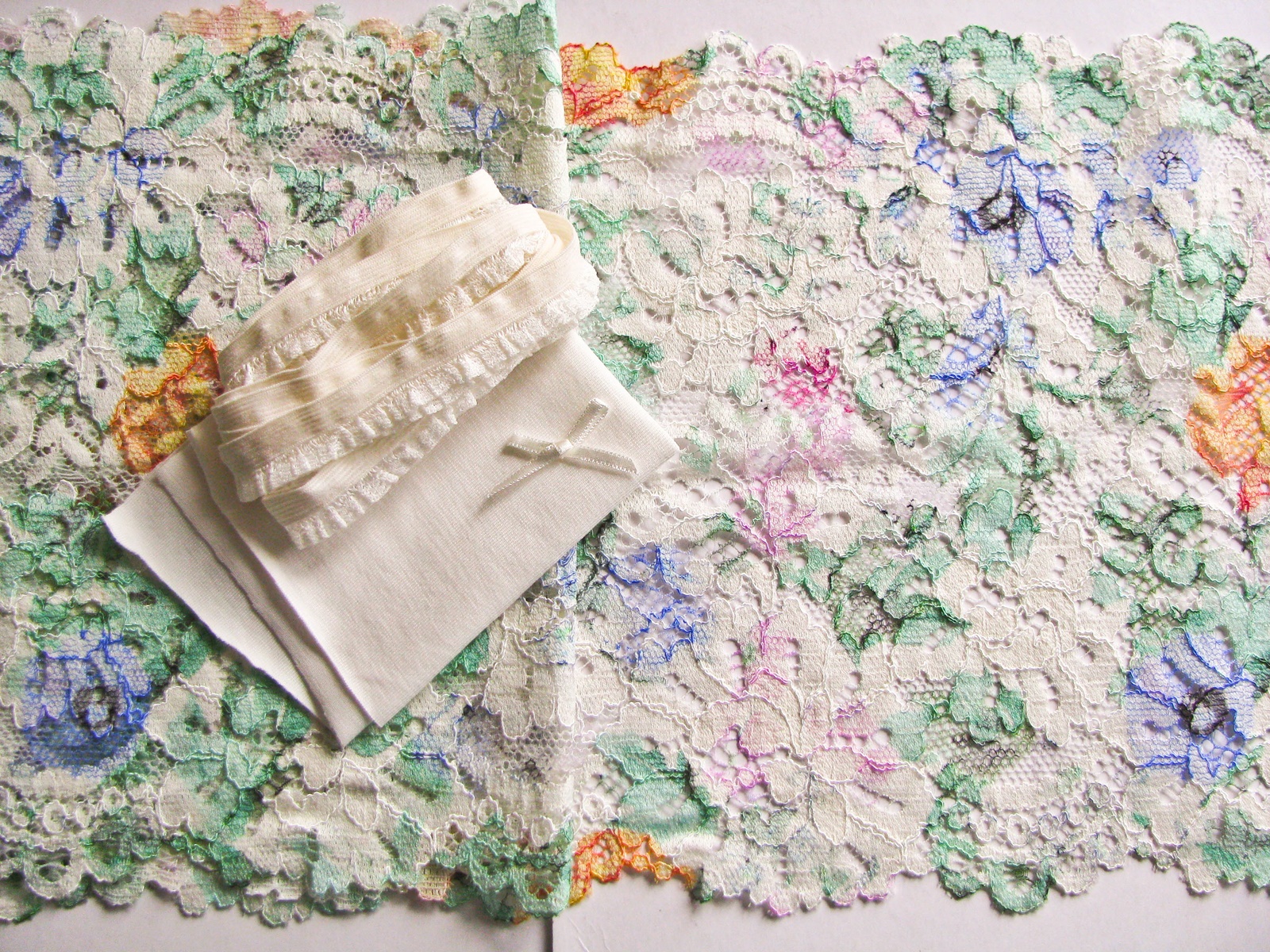 1 Materialpaket/Spitzenslip-Set "Flower meadow" lt. Foto, zur