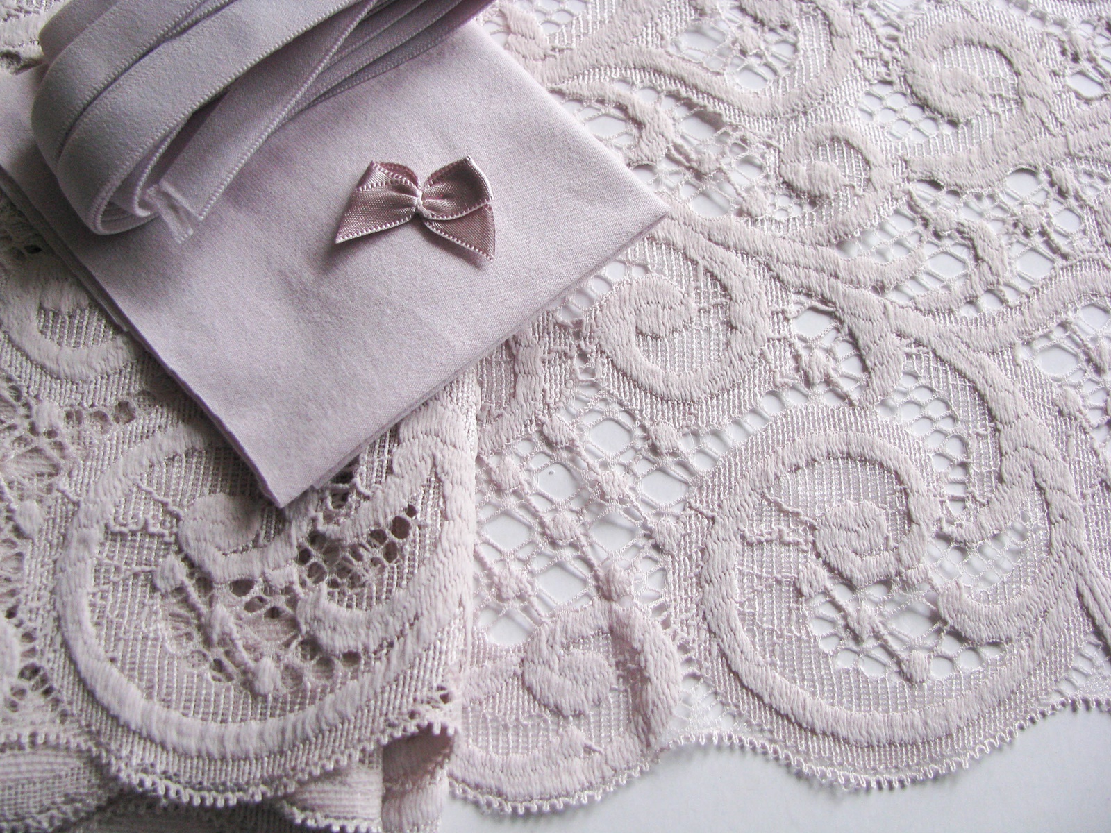 1 Materialpaket/Spitzenslip-Set "Porcelain ornaments" in rosigem porzellan/iris, zur