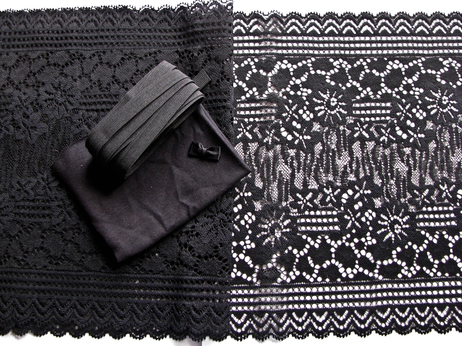 1 Materialpaket/Spitzenslip-Set "Night Wish" in schwarz, zur