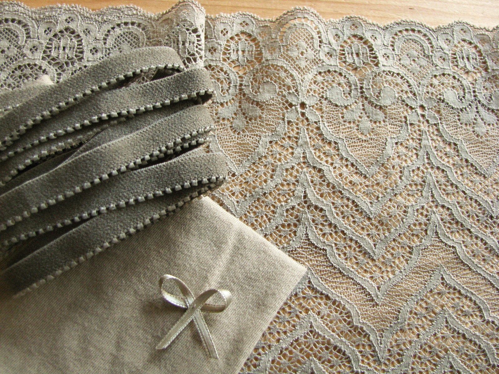1 Materialpaket/Spitzenslip-Set "Stonehenge" in oliv-grau, zur