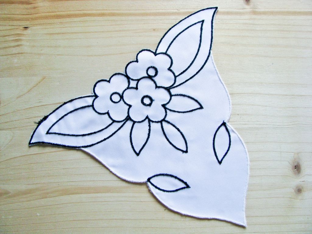 1 Stk. Aufnäher, bestickter Satin, in rein-weiß, bestickt in schwarz,