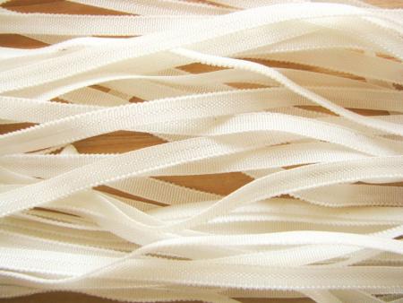10m /1Bund zartes Gummibändchen in hellem creme, zum Verstärken der Oberkante bei Oberkörbchen aus Spitze,