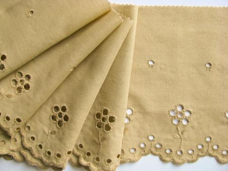 1m bestickte Baumwoll-Spitze "Safarie" in hellem safarie, mitBestickung und Lochung....