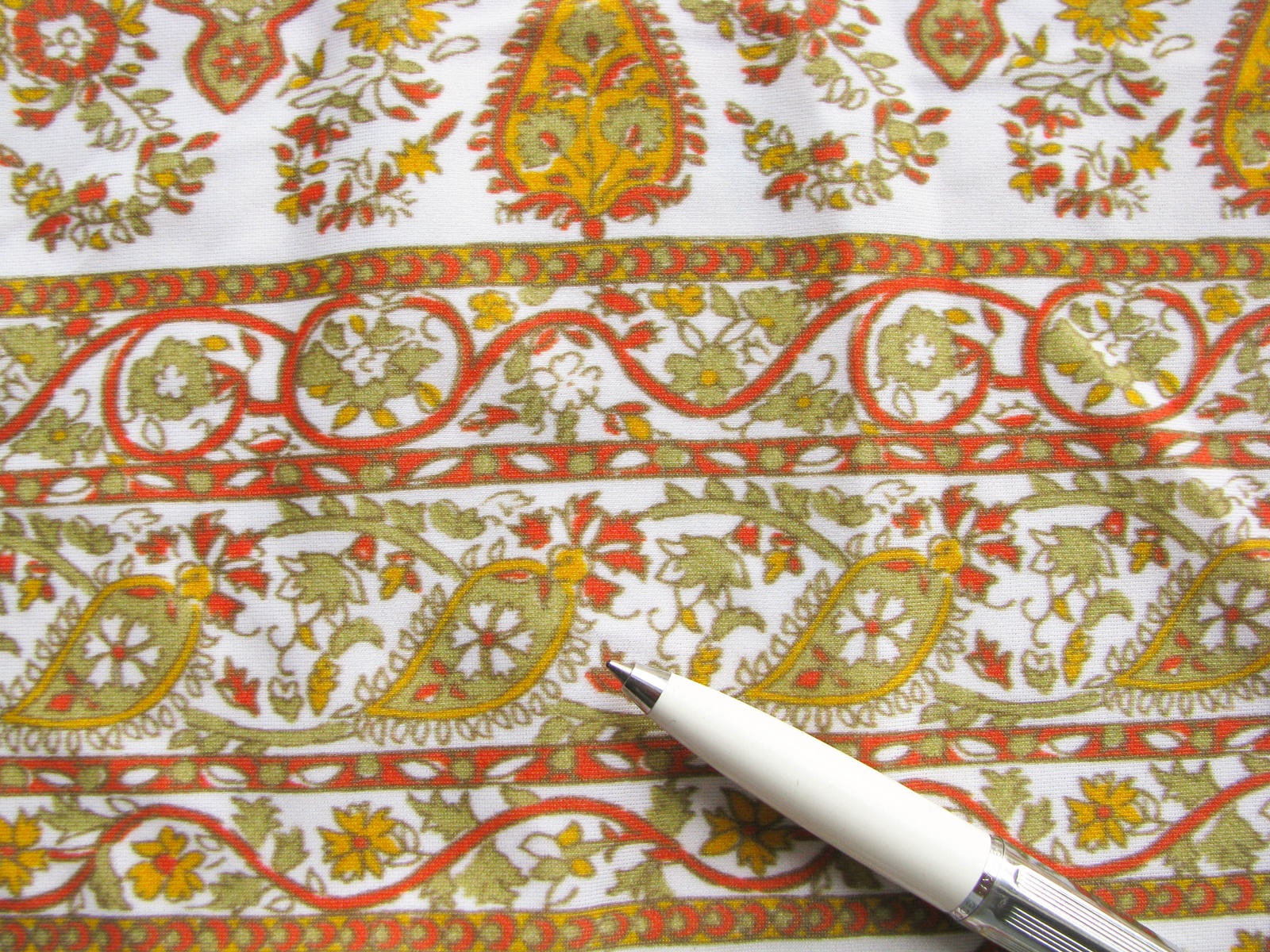 1m bi-elastische Microfaser "Oriental tulips" gedämpftem orange, gelb und olliv