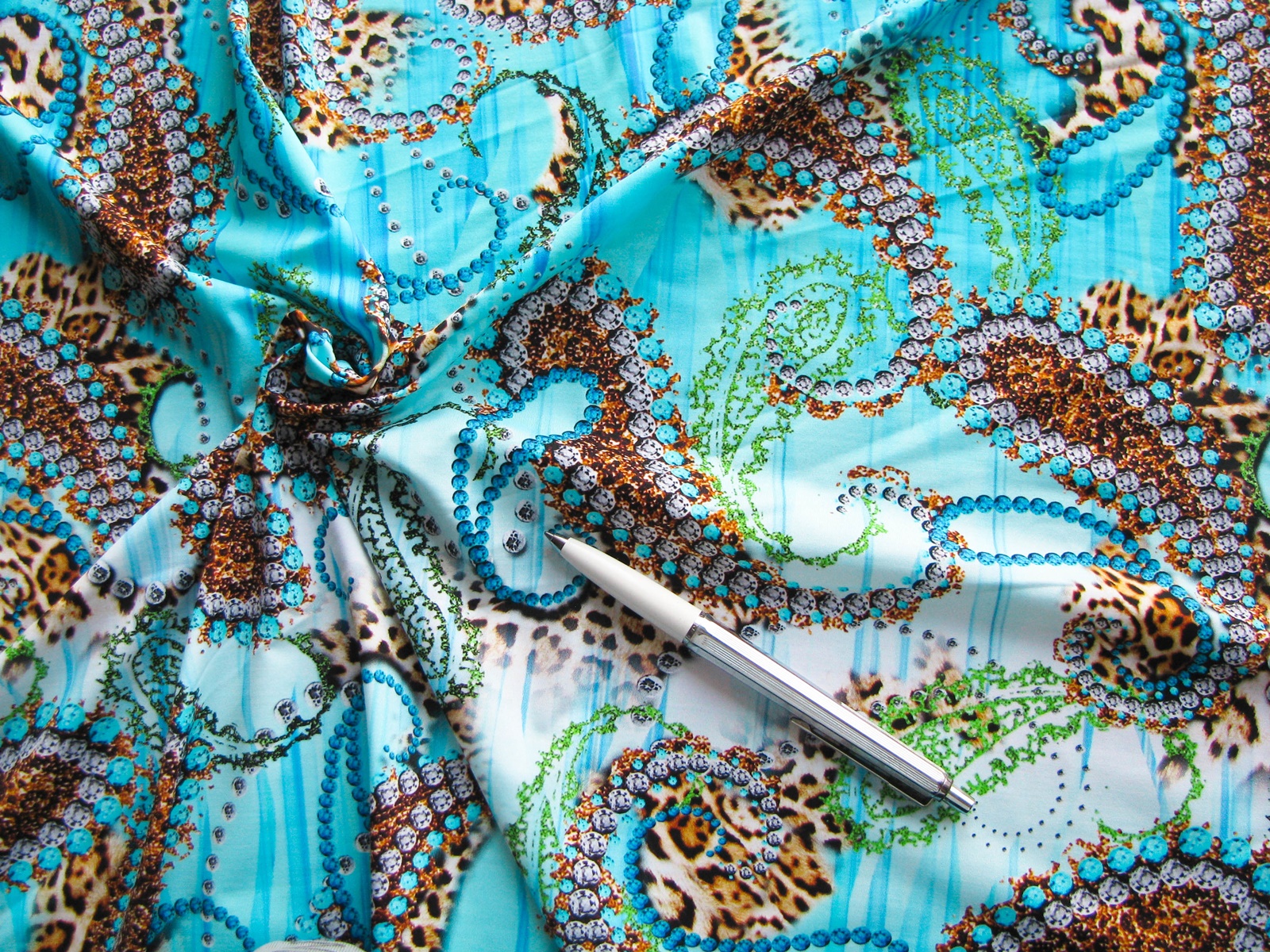 1m bi-elastische Microfaser "Diamond of Paisley" in türkistönen, bunt gemustert... lt. Foto