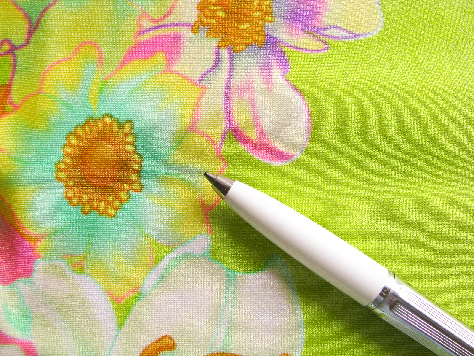 1m bi-elastische Microfaser "Flowers in neon" Blumen in neon, bunt gemustert... lt. Foto