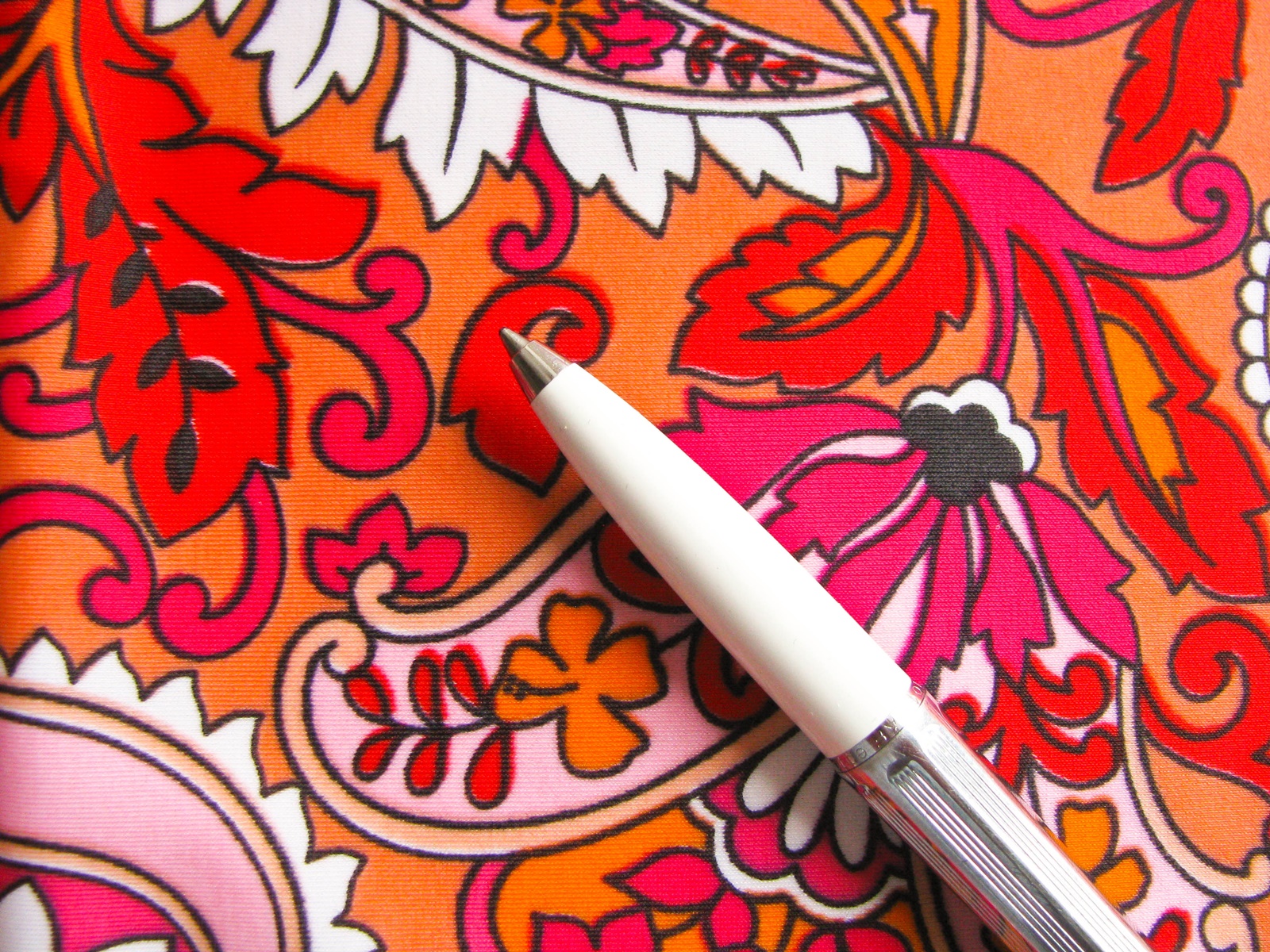 1m bi-elastische Microfaser "Fire of Paisley" in orange, pnk, rot..., bunt gemustert... lt. Foto