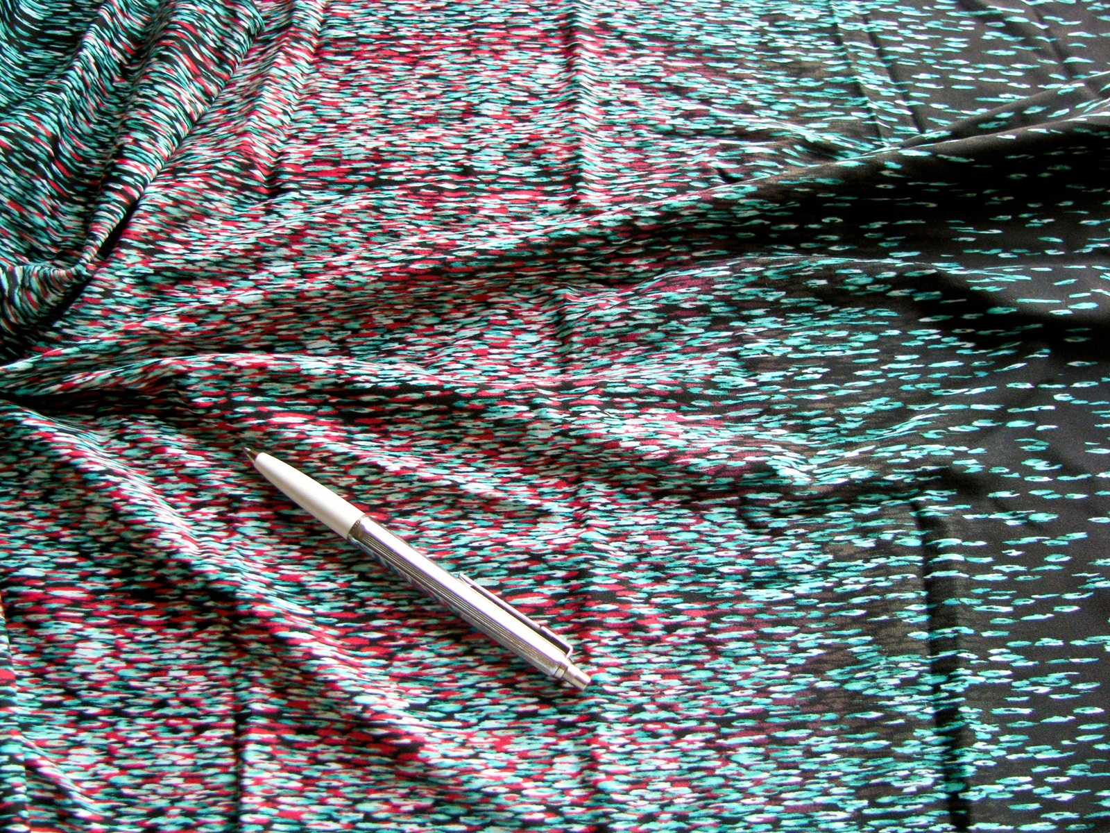 1m bi-elastische Microfaser "Oriental tulips" schwarz, rot und türkis lt. Foto