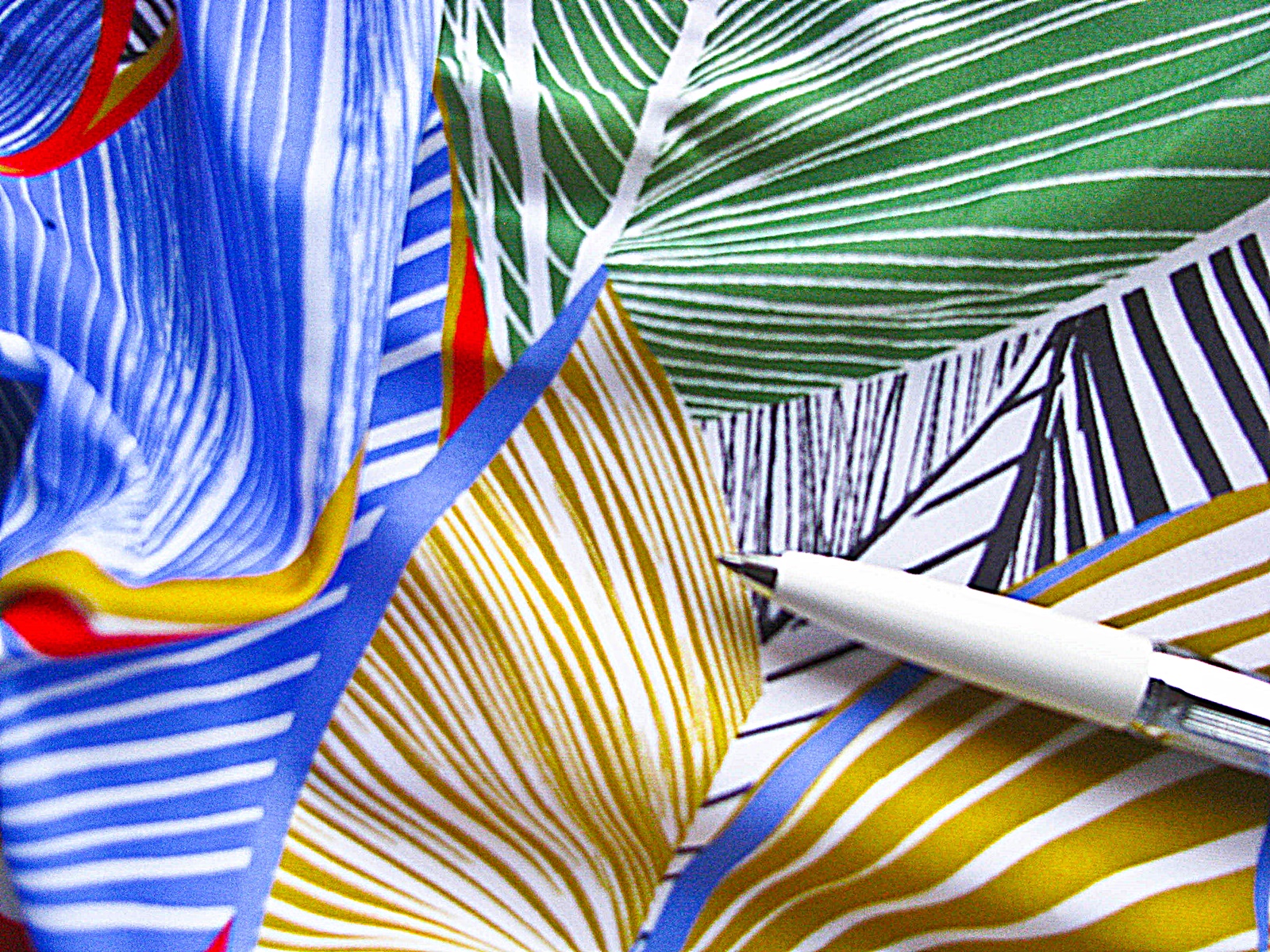 1m bi-elastische Microfaser "Meadow of leaves" in buntem Blätterdesign lt. Foto