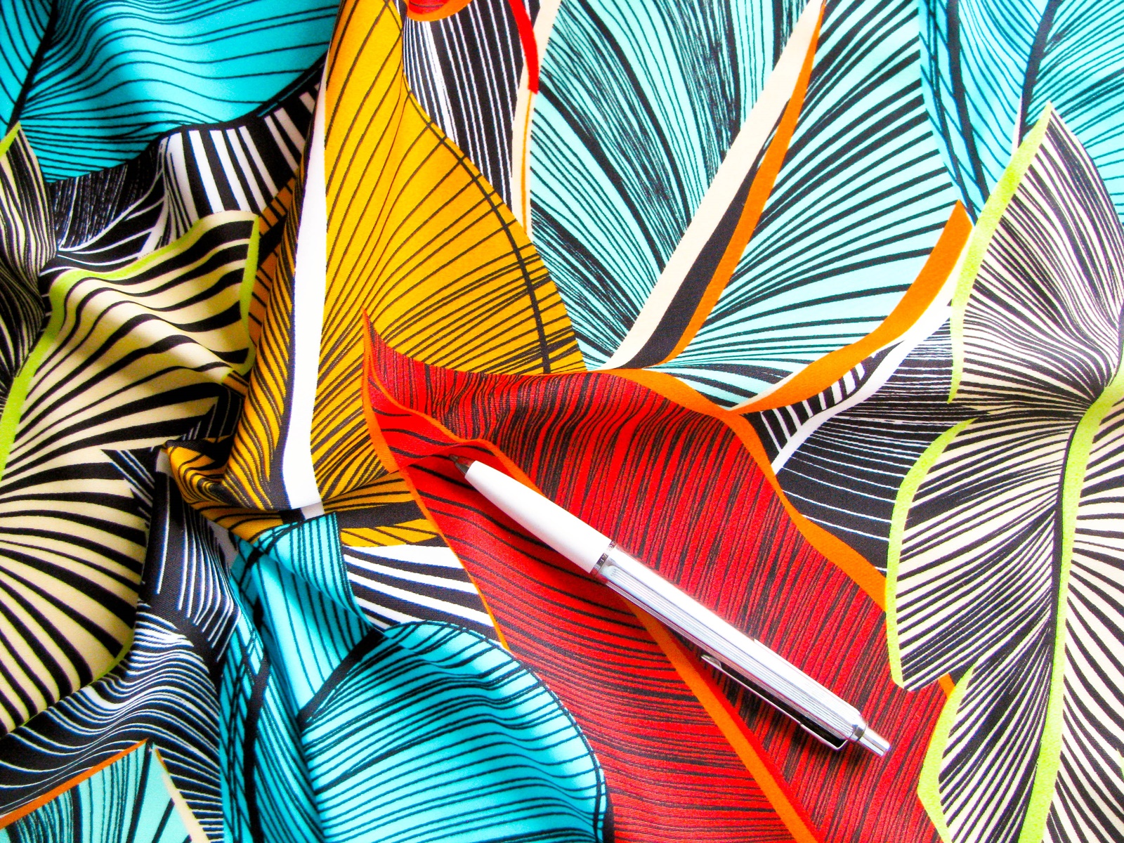 1m bi-elastische Microfaser "Meadow of leaves" in buntem Blätterdesign lt. Foto