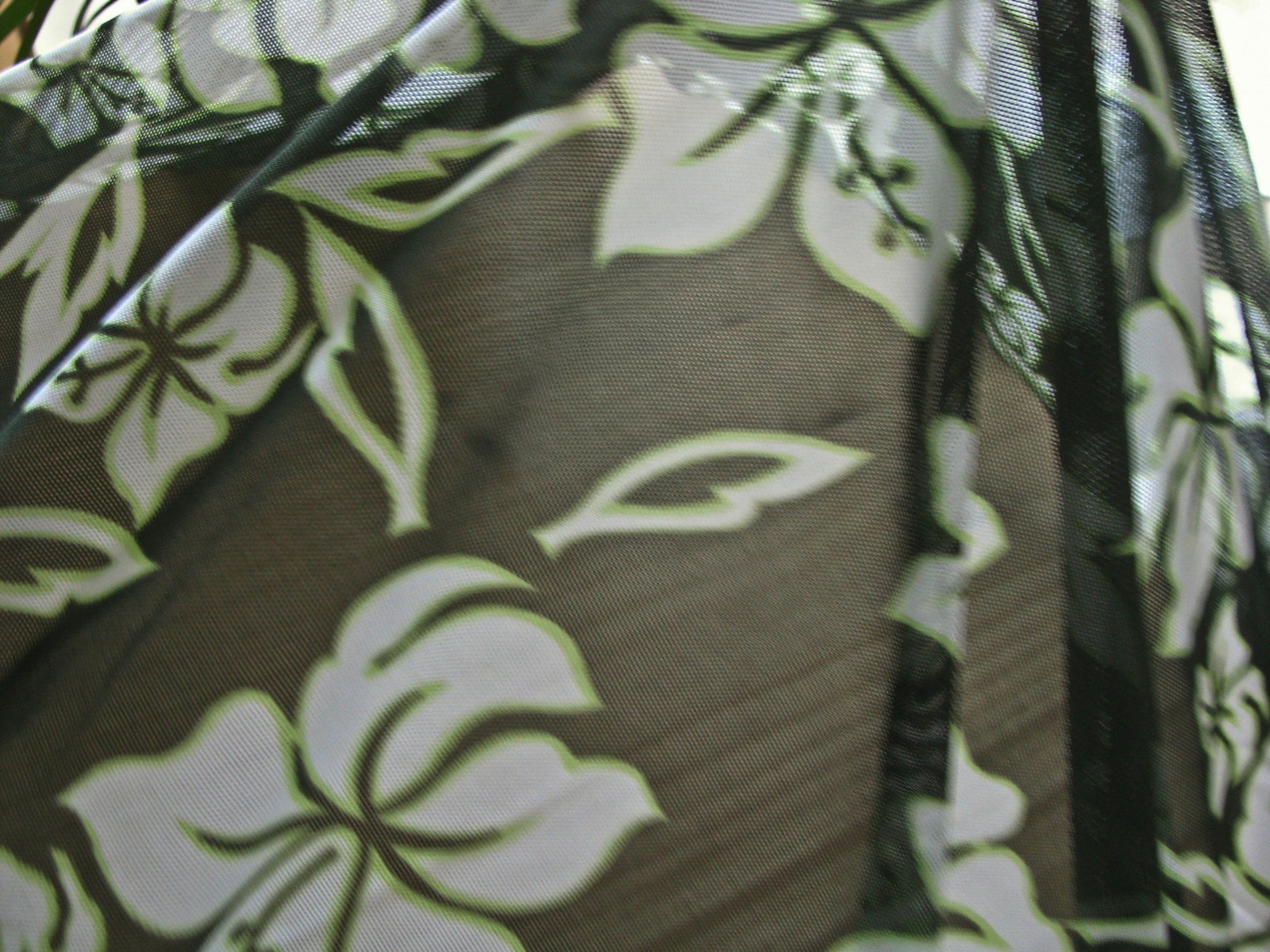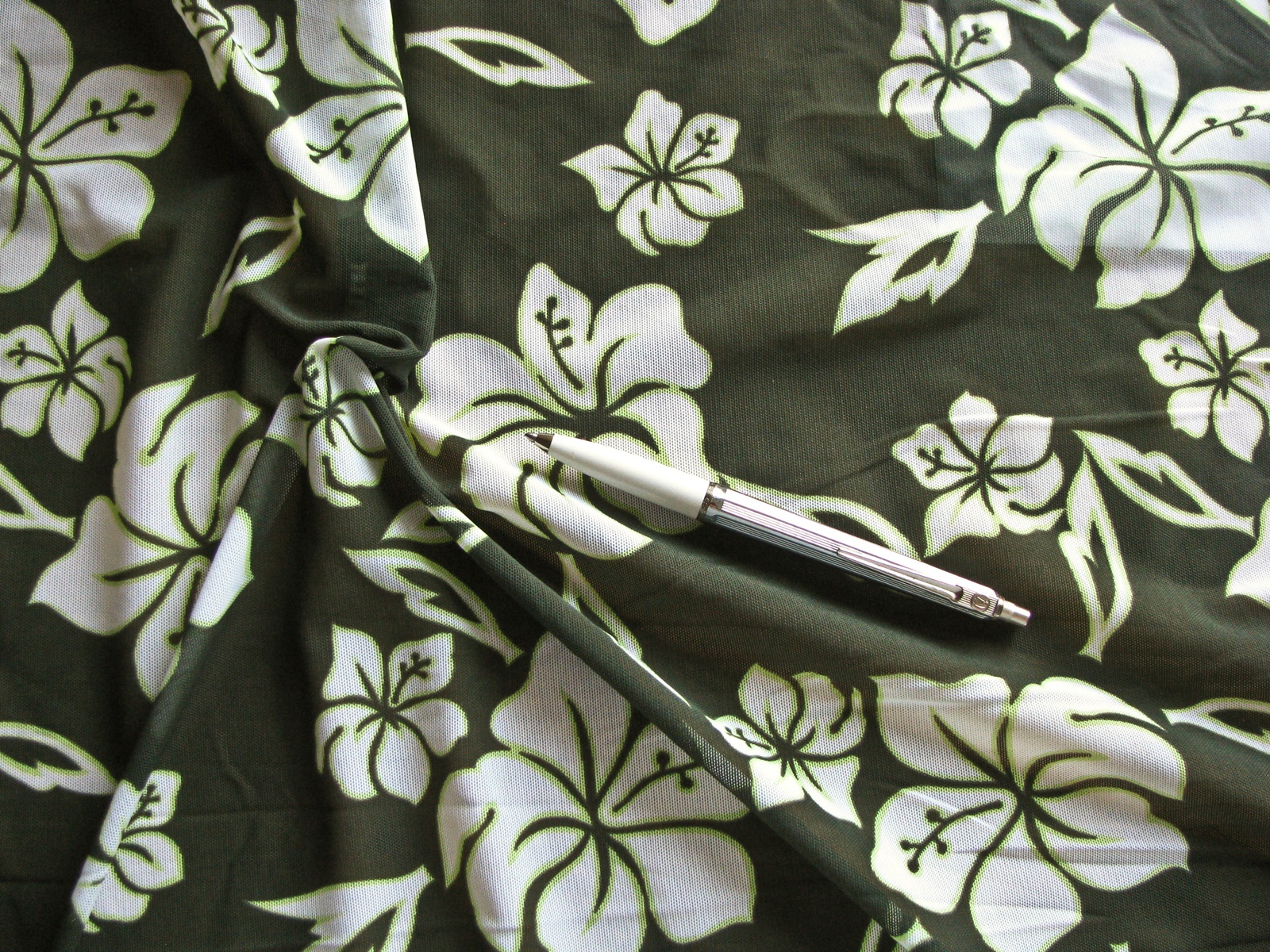 1m bi-elastischer Wäschetüll "Flower-Power", bedruckter Tüll, Blumendesign auf