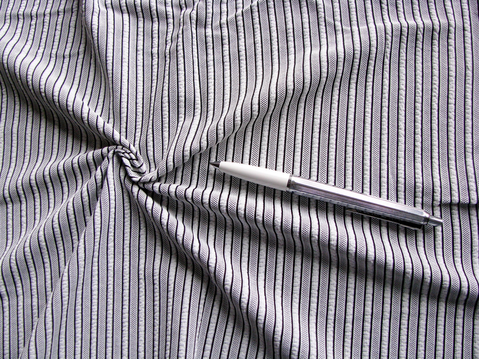 1m bi-elastische Mischgewebe in rein-weiß/schwarz zart gemustert,