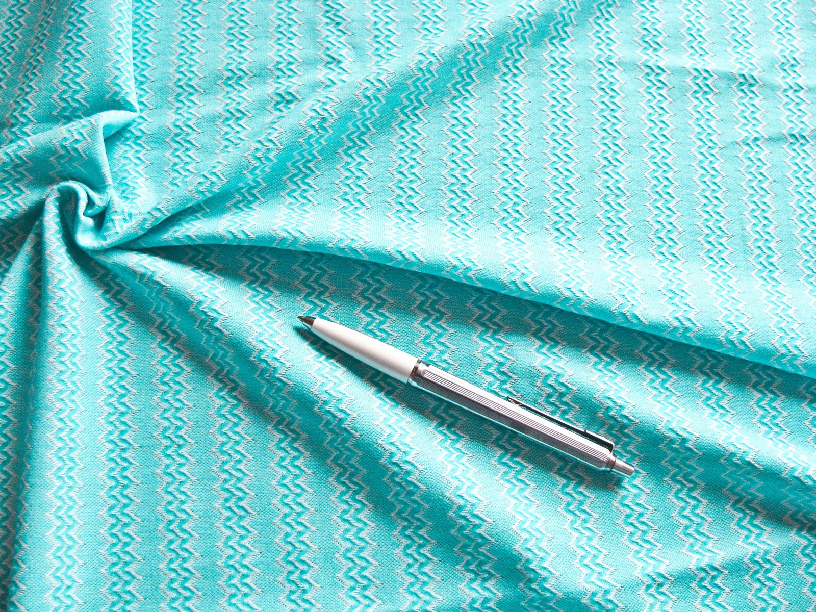 1m bi-elastische Mischgewebe in pool-türkis und rein-weiß zart gemustert,