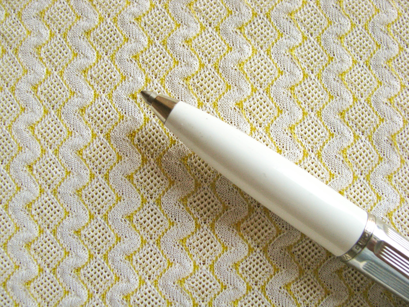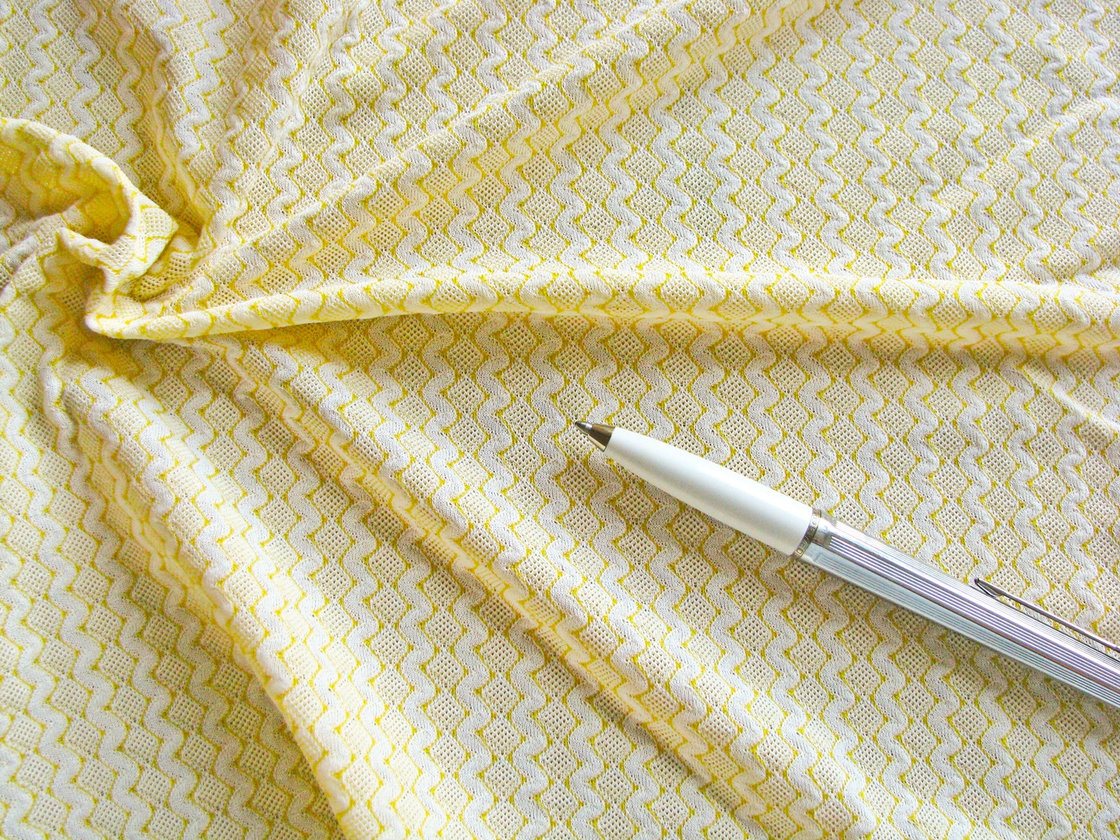 1m bi-elastische Mischgewebe in zartem hell-gelb und rein-weiß zart gemustert,