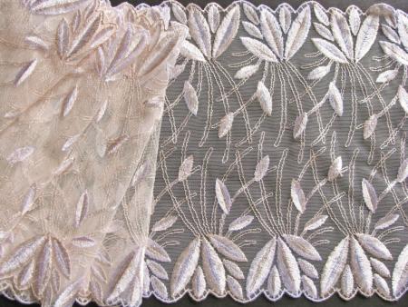 1m elastische, bestickte Edel-Spitze in zarter pfirsichblüte (noch