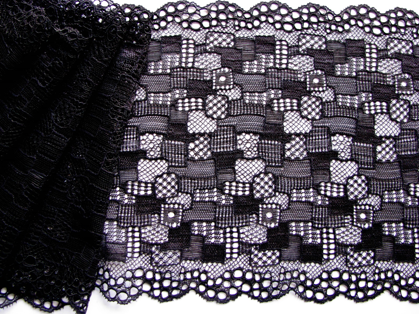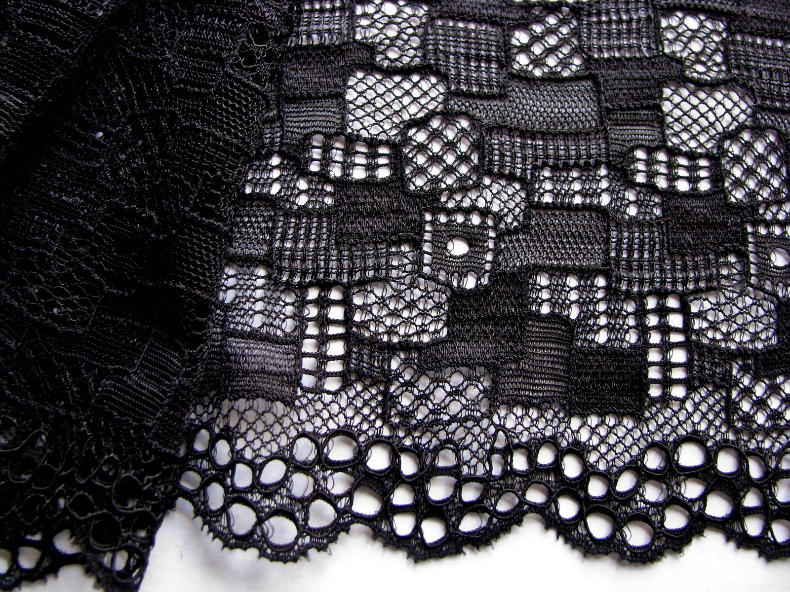 1m elastische Spitze "Patchwork-Design" in schwarz