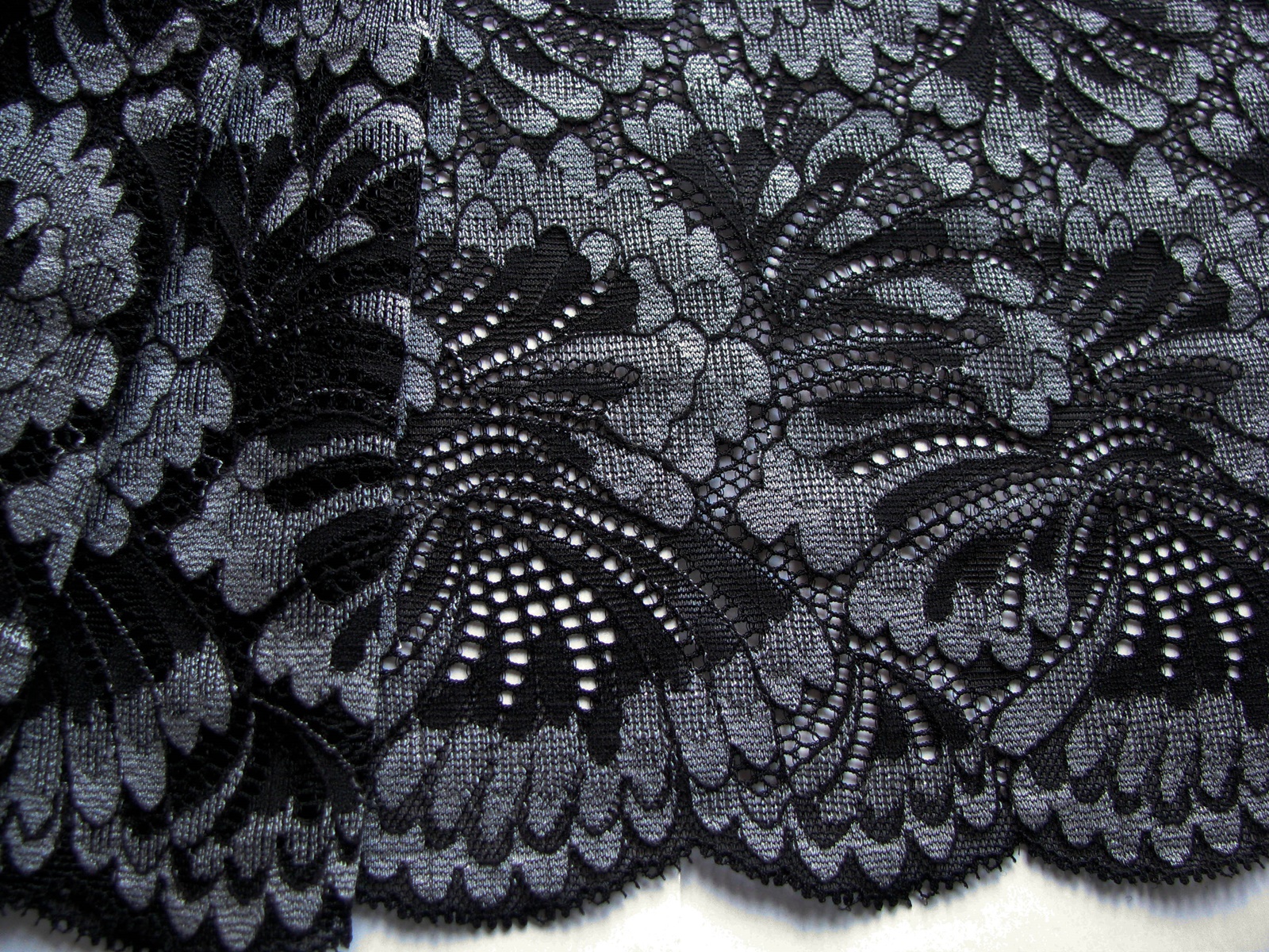 1m elastische XL-Spitze "Fächer/Fan-Lace" in schwarz/grau