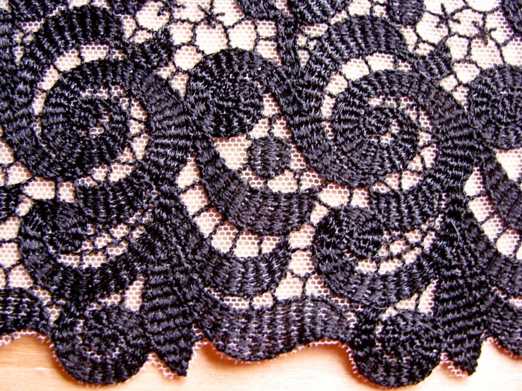 1m Stickerei-Spitze in einem Hauch von rosa, bestickt in schwarz, Tüllqualität, unelastisch