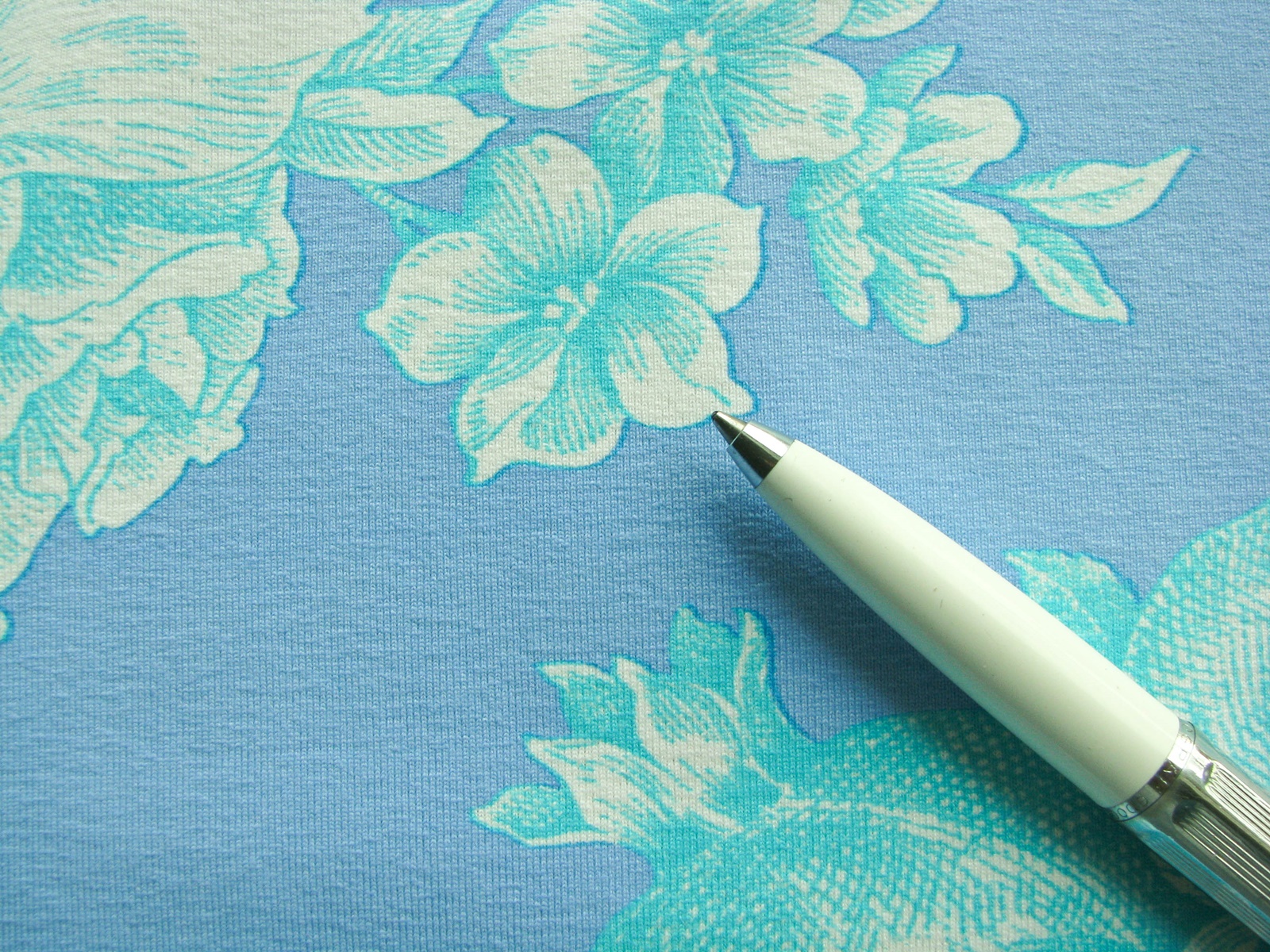 1m bi-elastischer Stretch-Jersey in puder-blau, türkis und weiß gemustert....