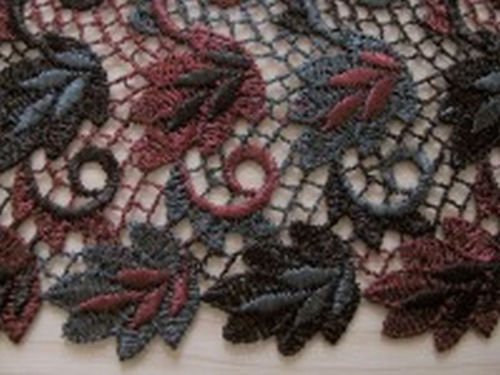 1Paket/27m besonders edle Makramee-Spitzen-Borte, 25% in anthrazit, greau und burgund, mit tollem Glanz,