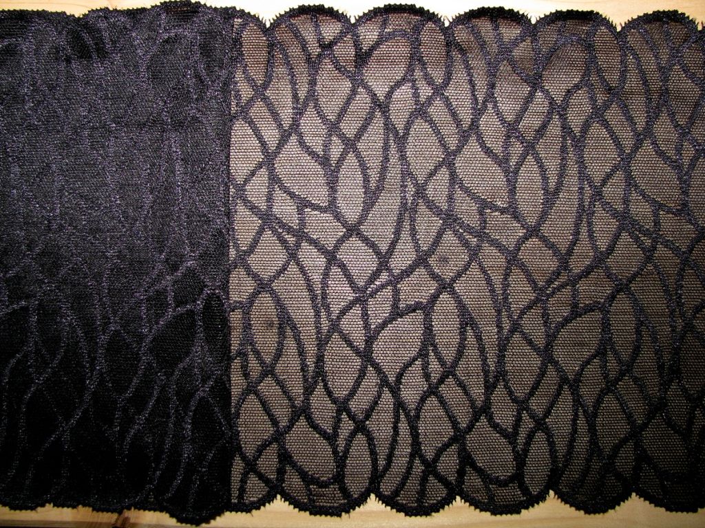 1Rolle/51m elastische Spitze in schwarz, intessantes Design, zart gearbeitet mit feiner Netzstruktur