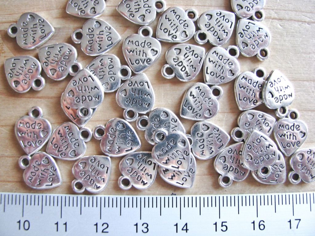 2 Stk. Charmes - Herzchen "made with love" in silber,