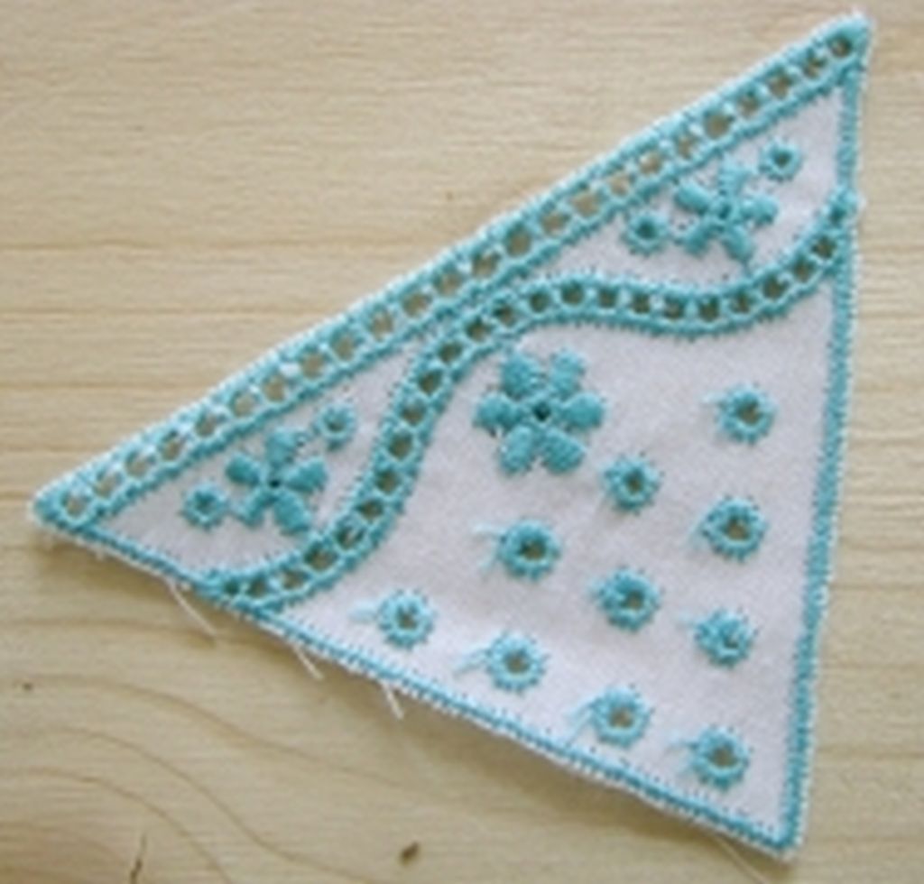 2 Stk. Spitzenapplikation in rein-weiß, grün-türkis bestickt, BW-Qualität,
