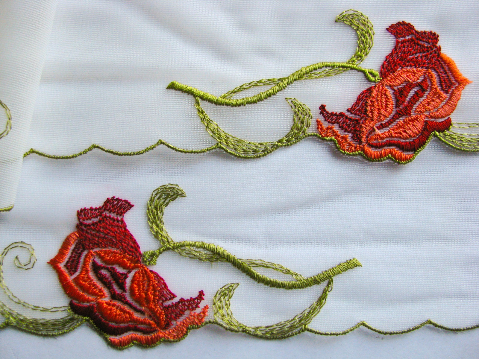 2m gegengleiche (1m re/1m li), dehnbare Dessous-Spitze "Red Roses" in zartem creme/ecru,