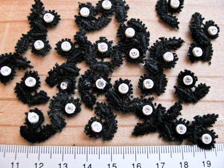 4 Stk. Blümchen in schwrz mit einem Glitzersteinchen