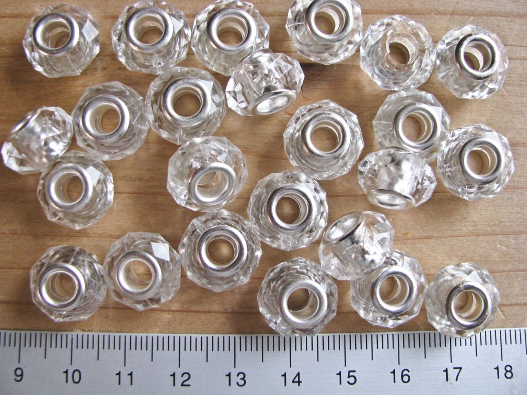 4 Stück Fasetten-Perlen in transparent, mit großem Ziehloch, für