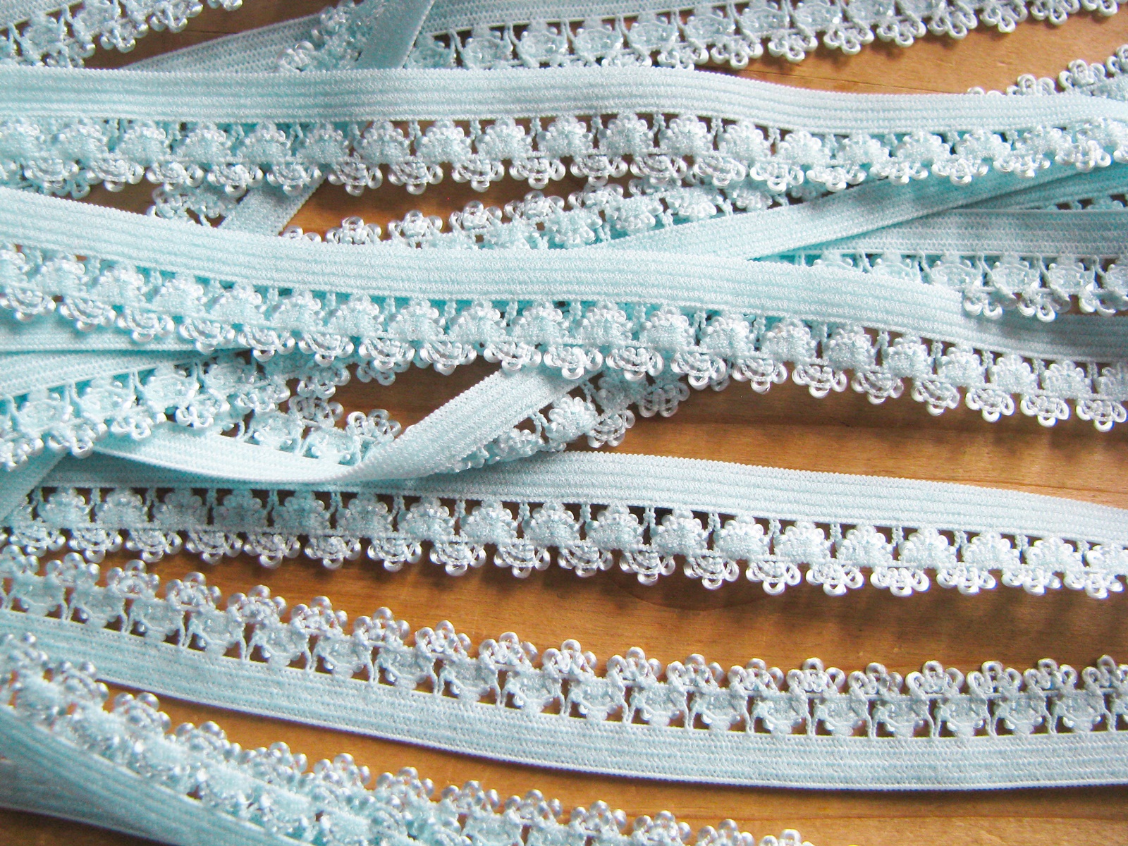 5m/1 Bund Schmuck-Wäschelgummi in hell-blau/eis-blau, mit toller Schmuckkante