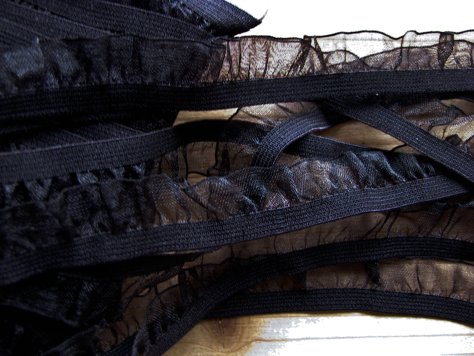 6m/1 Bund Rüschen-/Wäschegummi in schwarz, Gummi mit zarter Organzarüsche,