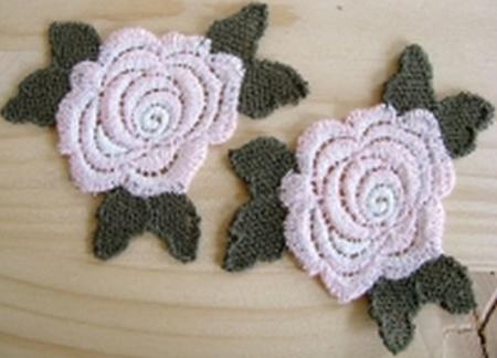 2 Stk Spitzenapplikation -Rose- in rosa, weiß und olivgrün, Ätzspitze,