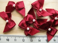 4 Schleifchen mit Perle in dunkler kirsche Fb0105